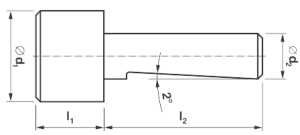 ČSN 221608, DIN 1868, materiál: konštrukčná oceľ - cementované kalené, d1=priemer_vodiaceho_čapu, d2=priemer_trnu_do_otvoru_zahlbnika