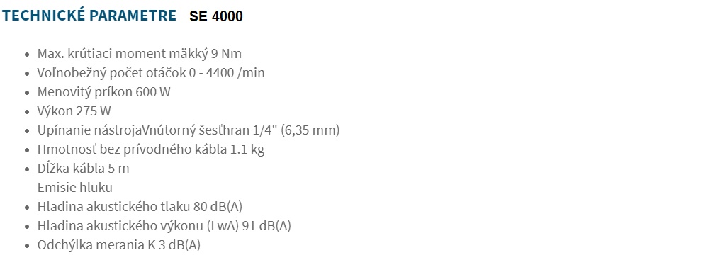 - klikni na zobrazenie informácií o výrobku:  *Popis  *Technické údaje  *Obsah dodávky